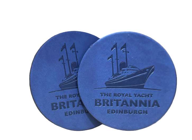 - A Pair Britannia Leather Ship Coasters